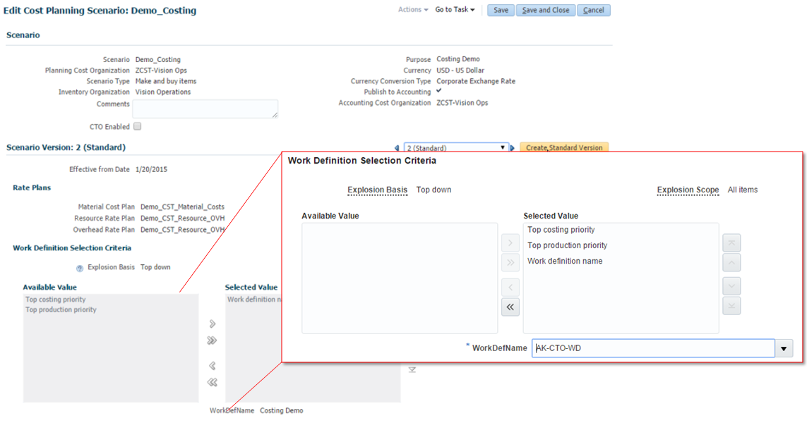 Standard Operations – You can create a predefined library of standardized production operations and their resources and usages so that you can add them to work definitions and work orders. Automatically propagate subsequent changes that occur in a standard operation, to the work definitions that reference it.