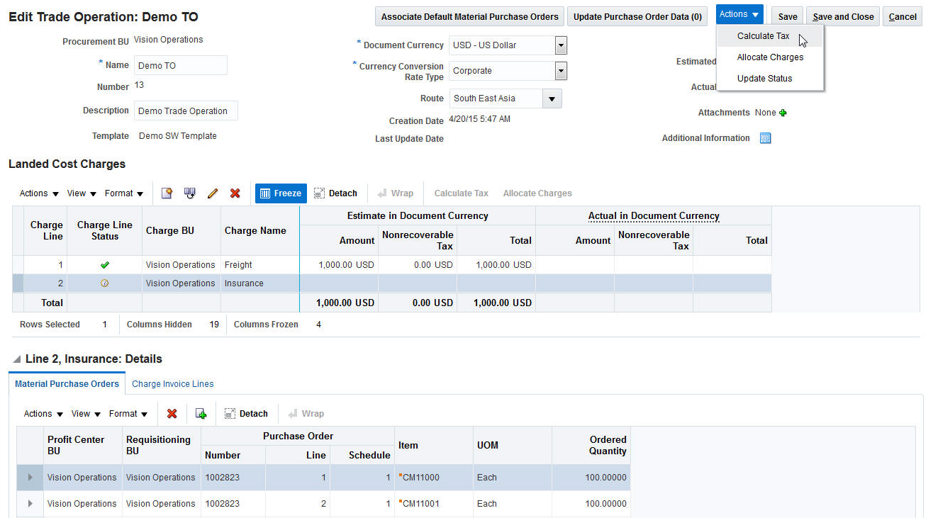 Oracle Fusion Supply Chain Financial Orchestration calculates the transfer price and taxes for an internal transfer when it creates the transfer order. Use the following page to examine and reconcile this price and tax: