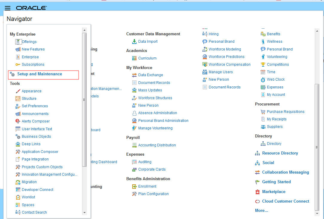 The new look and feel of the transaction pages (introduced in Release 11) is expanded to include all setup pages in Oracle Financials Cloud in Release 12. All pages throughout the application now have a consistent style.