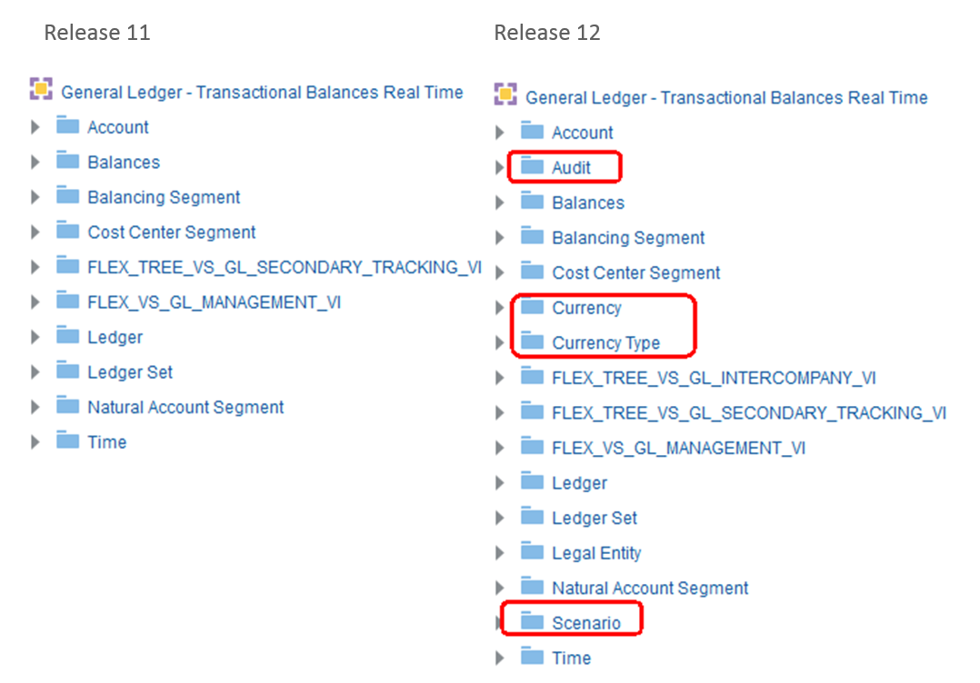 Global descriptive flexfields have been added to the subject areas for Payables, Receivables and General Ledger to support reporting on country-specific information.