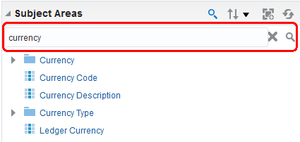 Locating a field no longer requires you to navigate through the entire subject area. You can perform a search and directly add the search result to the report.