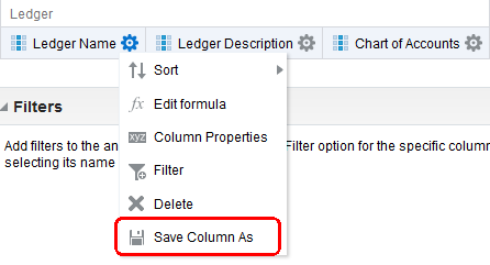 In earlier releases, new columns created while building a report were available only in the report that was created. Users can now save a column with a formula and reuse the formula column in other reports or analysis by dragging and dropping it from the Catalog pane.