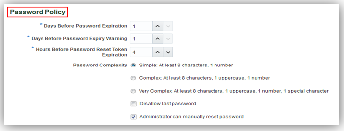 Oracle Fusion Applications Security provides a single console where IT Security Managers and Administrators can perform various functions including user lifecycle management, role definition, security policy management(both functional and data), role hierarchy maintenance, username and password policy administration, and certificate management. The console also enables users to simulate the effect of security changes, to run security reports, and download a connector for integration with Microsoft Active Directory.