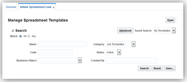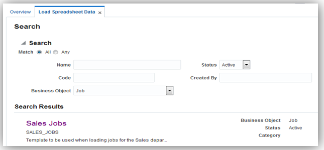 Manage Spreadsheet Templates and Run Spreadsheet Data Loader are available only if the HCM Data Loader Scope parameter is set to Full. If HCM Data Loader Scope is set to Limited in your environment, then the existing tasks remain available. The existing tasks are: