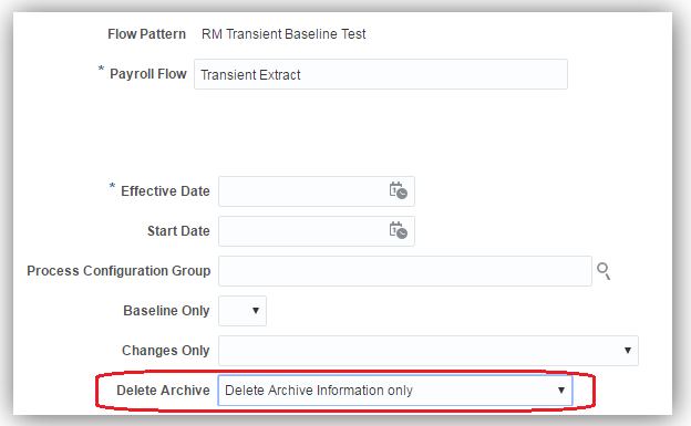 Free up storage space in your application and improve performance by using the new Delete Archive parameter. Use this parameter when you create a full extract of data, and not for changes only extract. When you run the extract the application generates the XML and archive and delivers the output to the destination. After the application delivers the output, for example, to WebCenter Content, you have the option to discard the archive data and XML files, therefore reducing storage consumption by deleting these extract archives.