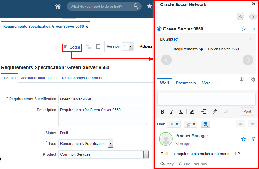 Link Oracle Social Network Web Client to Product Lifecycle Management Objects