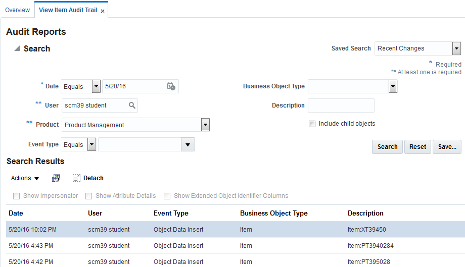 | Maintain Audit Trail for Item Classes, Trading Partner Items, and Item Rule Sets |