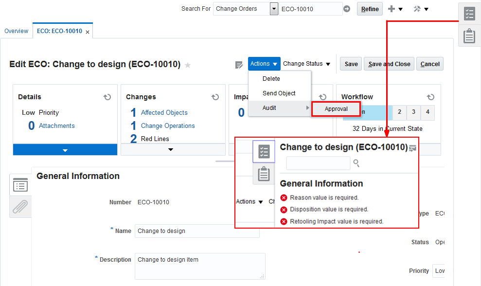 In this release, a conversation can be initiated from Innovation Management for Requirements, or from Product Development for change orders or items. When a conversation is initiated from either of these locations, an embedded link will enable users to navigate bi-directionally between the object of discussion and the conversation details.