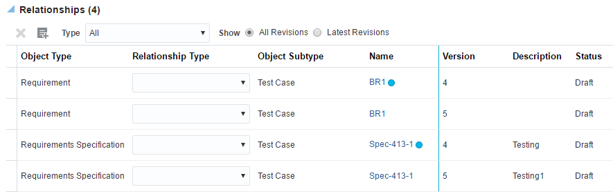 With this release, you will have greater visibility into item revisions. Each revision is associated with its requirement through a “Has Changed” indicator, located on Product Development items added to the Innovation Management Relationships table. If a requirement is tied to a specific revision of a Product Development item and that item undergoes a revision change, the Relationships table of the Innovation Management object is updated. This update is flagged as a blue dot, indicating that a newer revision of the item exists. Hovering over the blue dot displays a tool tip alerting you that the item is “Modified in a later version.”