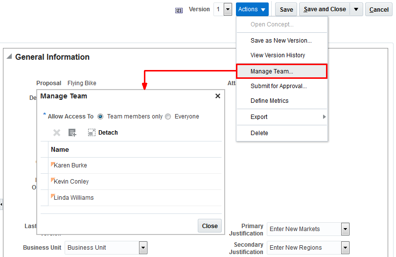 With this release, a new Add Team Member action is available. When your proposal team is created, only authorized team members will be able to discover and access the associated proposal. Data security is shared across both the concept and the related proposal.