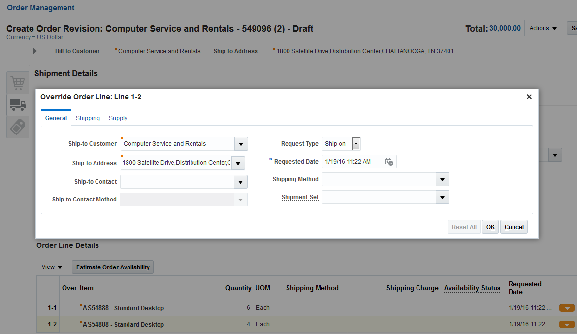 Order change management enhancements include the ability to allow external systems to send only changed order lines and assign individual fulfillment orchestration processes to split lines. This provides more streamlined integration with external order capture systems and allows split lines to take advantage of existing Order Management features (for example, view fulfillment progress of each split line, find alternate supply sources for exception order lines).