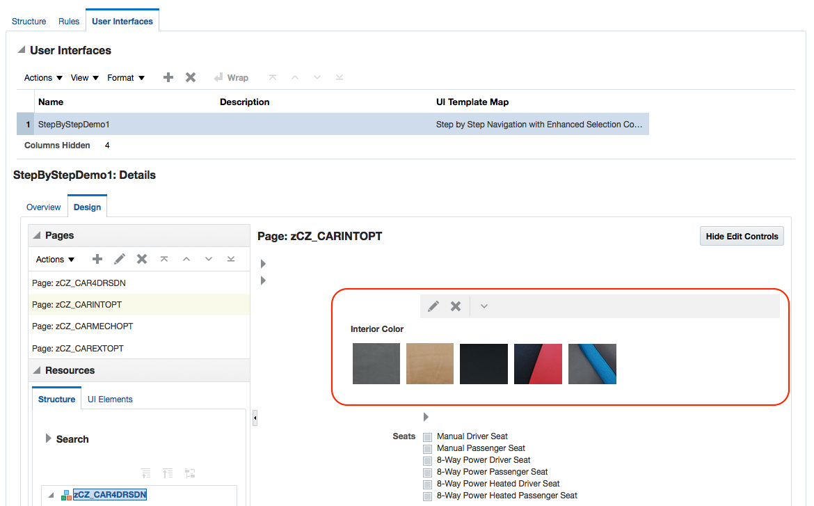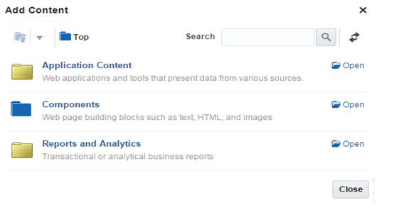- To modify content on existing work area pages, hover the mouse pointer over a region of the page. Doing this will draw a blue panel around the component. With the correct panel highlighted, right click to edit the component or the parent component.