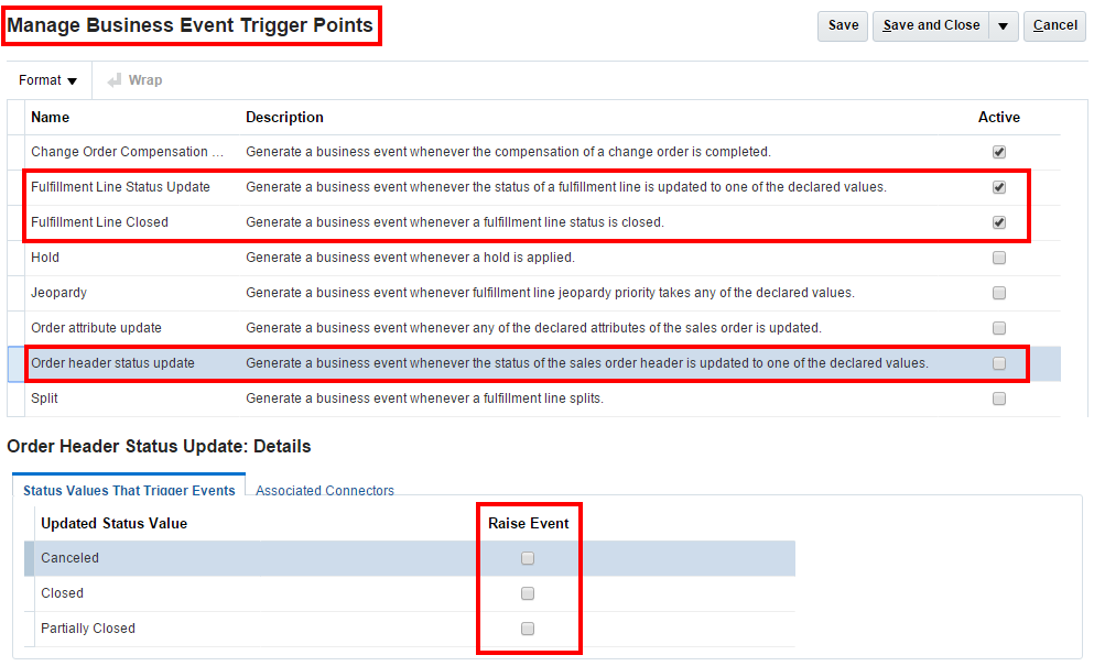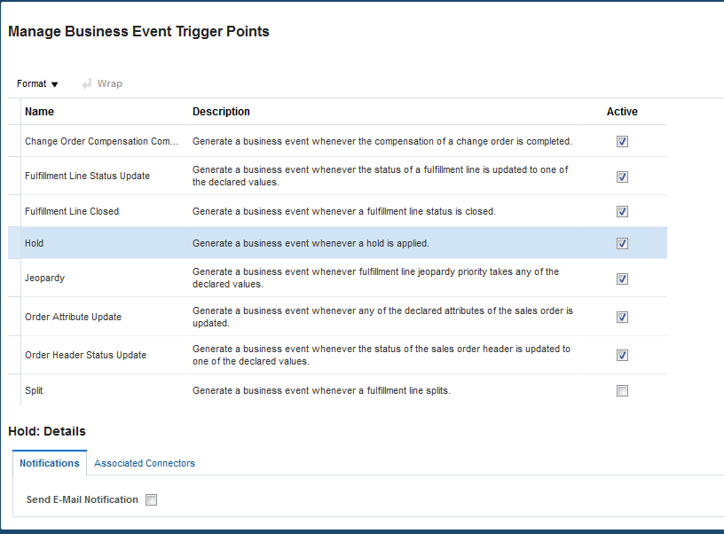 - Select the events for which you want to send e-mail notifications using the Manage Business Event Trigger Points page or the Edit Status Rule Set page.