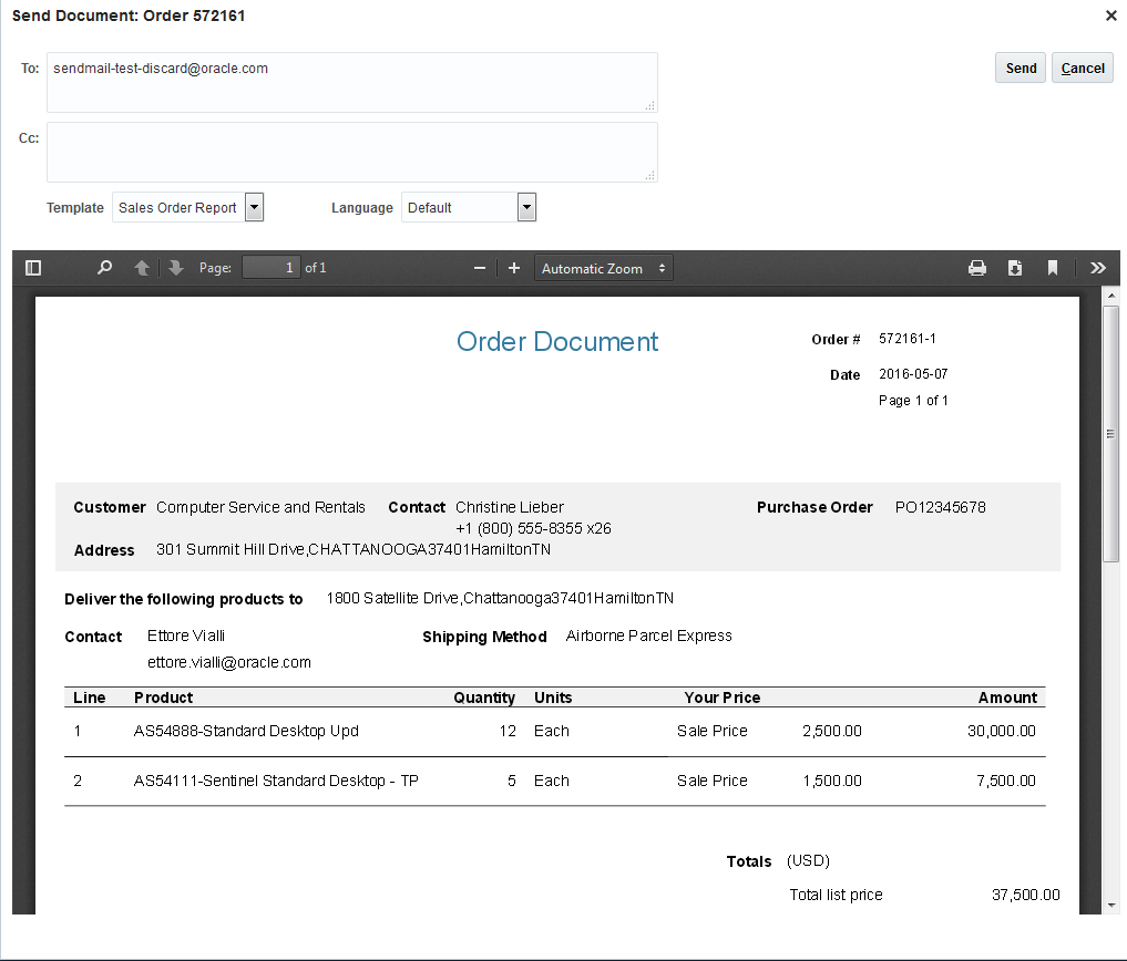 Timely customer communication of order status and situations that may affect delivery is critical to improving customer satisfaction. Administrators can set up e-mail notifications to the customer contact for the order and the ship-to contact for the shipping notice when key events occur during order fulfillment. Administrator users can format e-mails using Microsoft Word and embed order attributes into the e-mail notification. You can now send a ship notice e-mail as soon as an order has shipped.