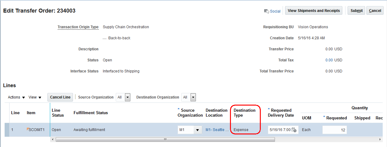 | Create and Update Internal Material Transfers Using an Open Interface |