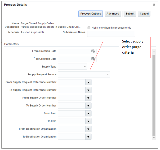 | Purge Supply Order Interface Data DOS_PURGE_SUPPLY_ORDER_INTERFACE |