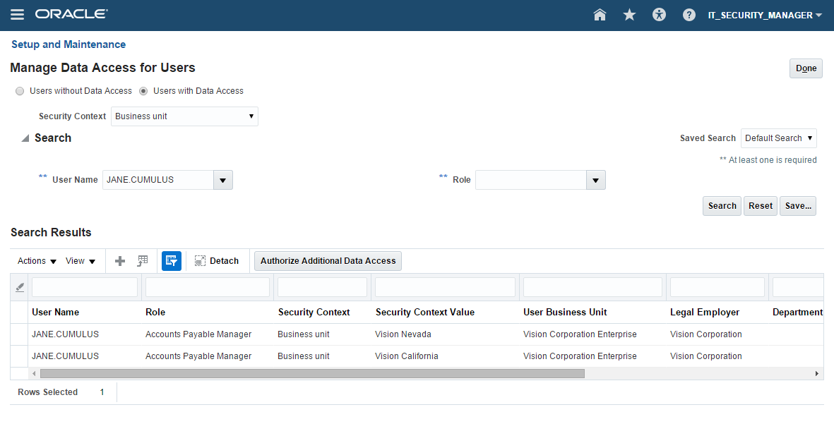 You can now identify a predefined (factory shipped) Oracle role when viewing the role. Predefined Oracle roles are locked and you cannot customize the Oracle delivered functional and data security policies associated with these roles. You can, however, add data security policies to these roles.