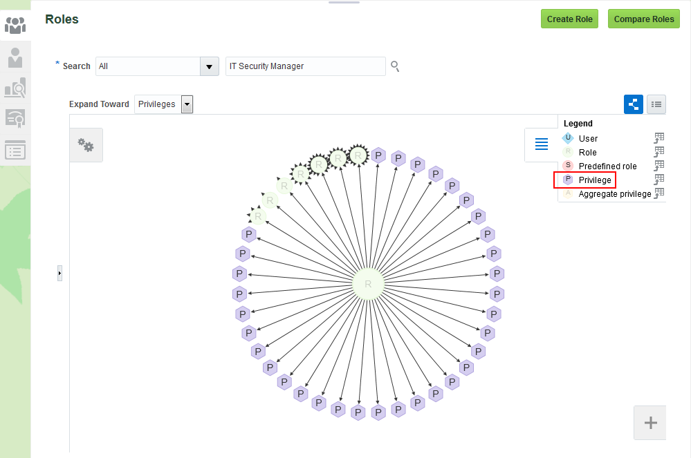 Predefined Oracle roles are displayed in a different color in the graph visualizer.