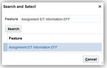 In the Feature field, search for and select Assignment EIT Information EFF.