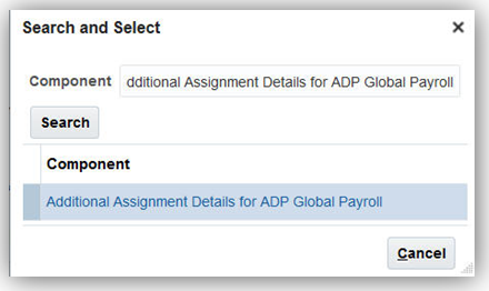In the Component field, search for and select Additional Assignment Details for ADP Global Payroll.