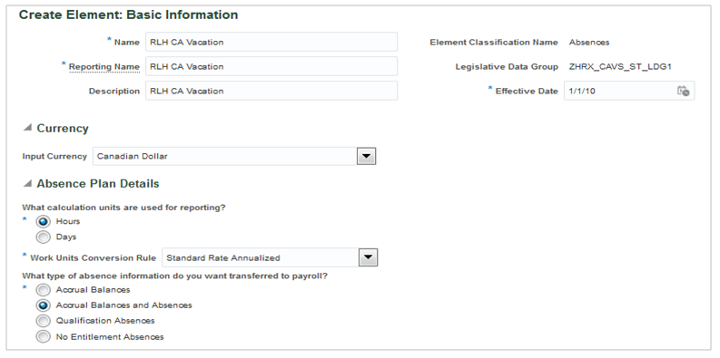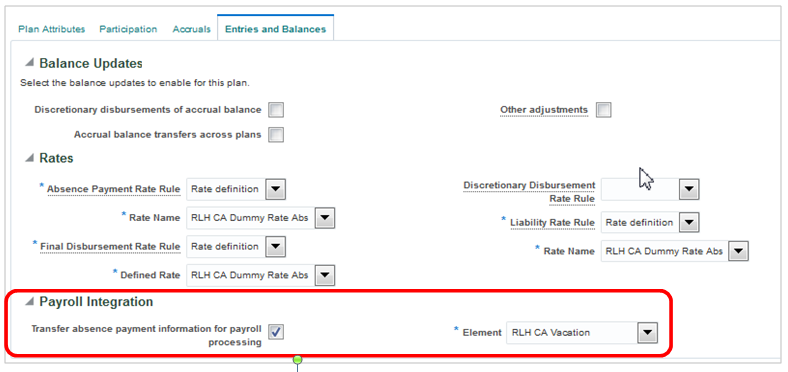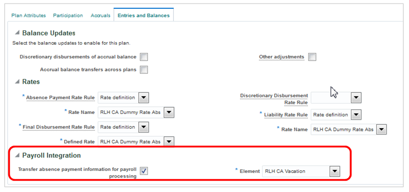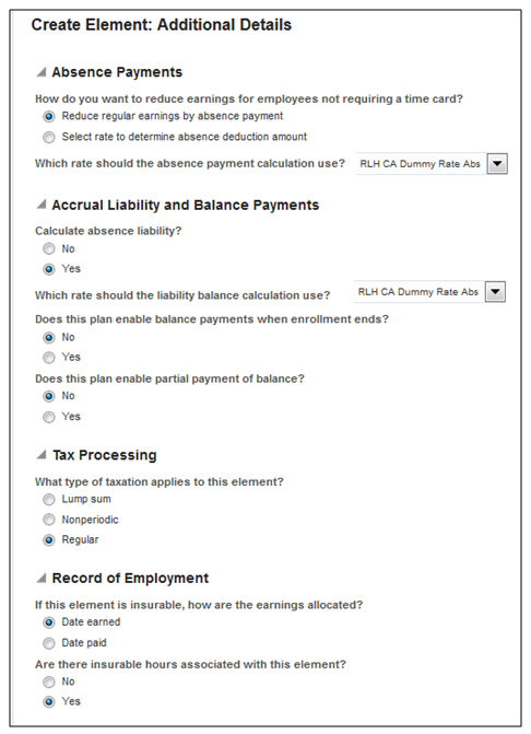 Oracle Fusion Global Human Resources for Canada: Absence Elements: Discretionary and Final Disbursement Absence Payments |