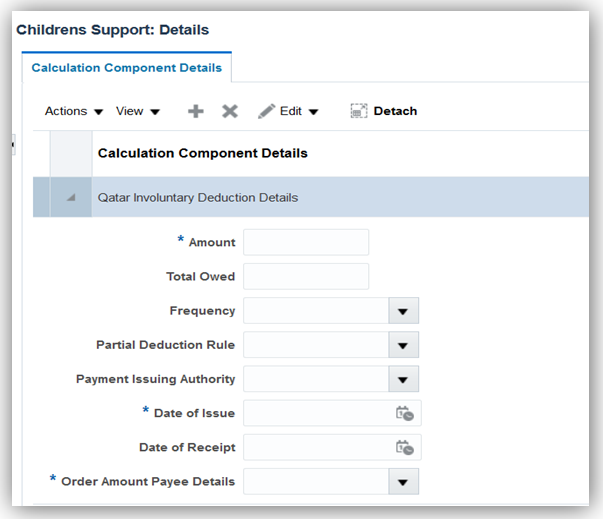 Oracle Fusion Global Human Resources for Qatar: Involuntary Deduction Element Template |