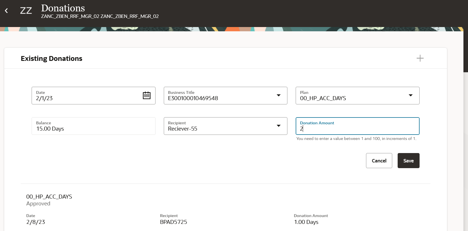 The Donations page was re-created using the Redwood tool set available in Oracle Visual Builder Studio to improve the user experience by providing the same consistent functionality across Redwood pages.