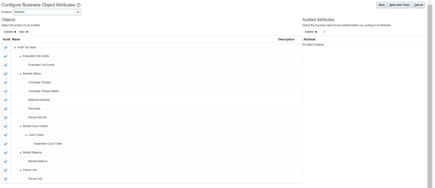 5. Click Save and Close on the Configure Business Object Attributes page.