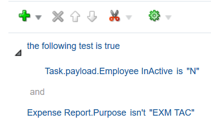 - When you select the Surround option for a line (not for a pattern), instead of brackets, you get a subsection in the rule named the following test is true, with its own toolbar right above.