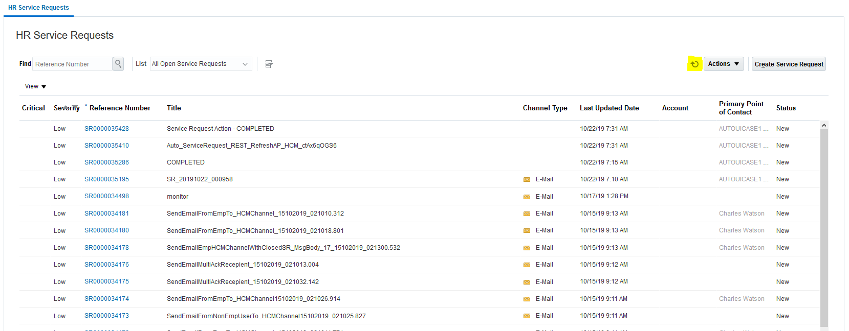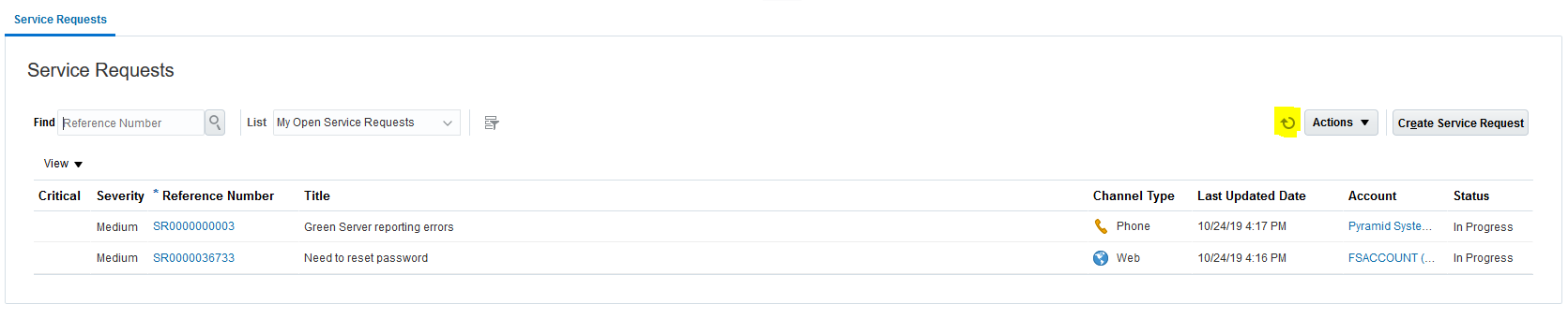- Refresh Icon on Service Request and HR Service Request List Pages