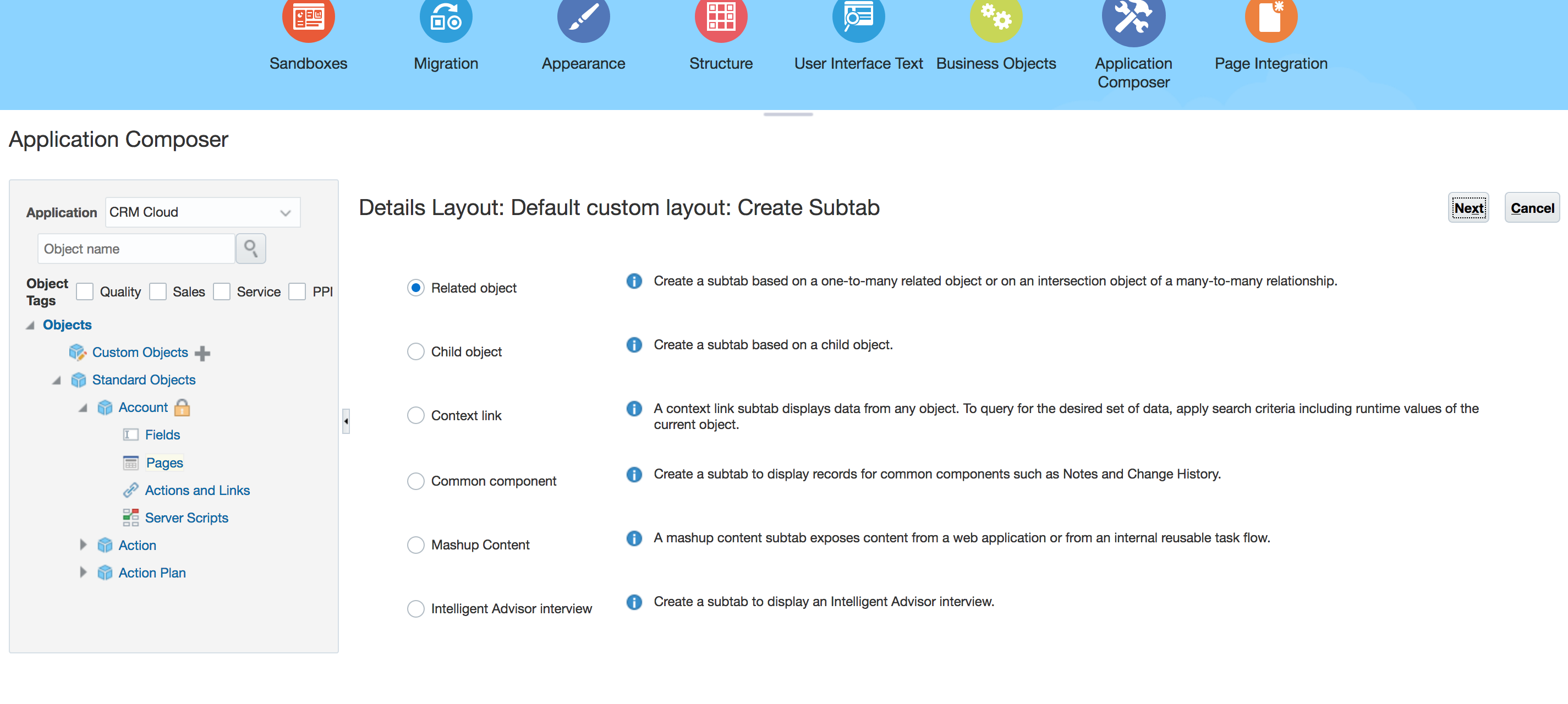During your upgrade, most existing customizations made in Application Composer are automatically updated to the latest enhanced behavior in the new release. However, there are a few exceptions, which require you to manually initiate the upgrade script for each of those customizations.