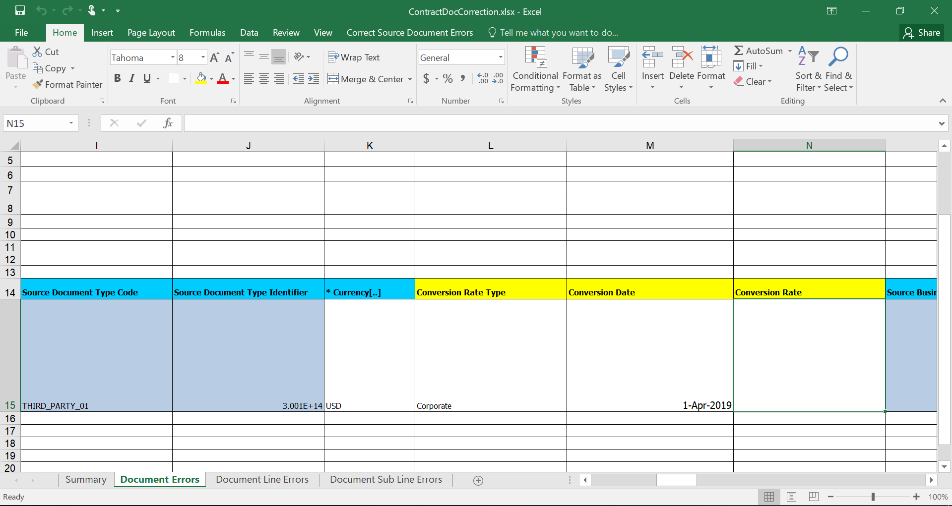- Use FBDI spreadsheets to upload manual purchase/sales transactions and journals. Enter the document sequence in the Document Sequence Name and sequence number in the Document Sequence Value columns of the Transaction Headers worksheet. The Document Sequence Name and Document Sequence Value columns must be populated for each transaction/journal to be reported. Only FBDI spreadsheets are currently supported.
