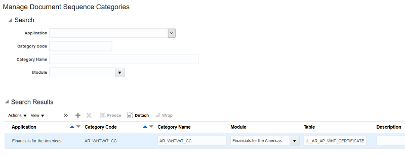 - On the Manage Document Sequence Categories page, click + to define a new category.