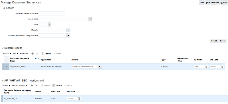 Create document sequences for all required purchase/sales transactions and journals using the Manage Document Sequences setup page. These are sequences with no Document Sequence Categories assigned. Configure these sequences with Application and Module set to Tax.