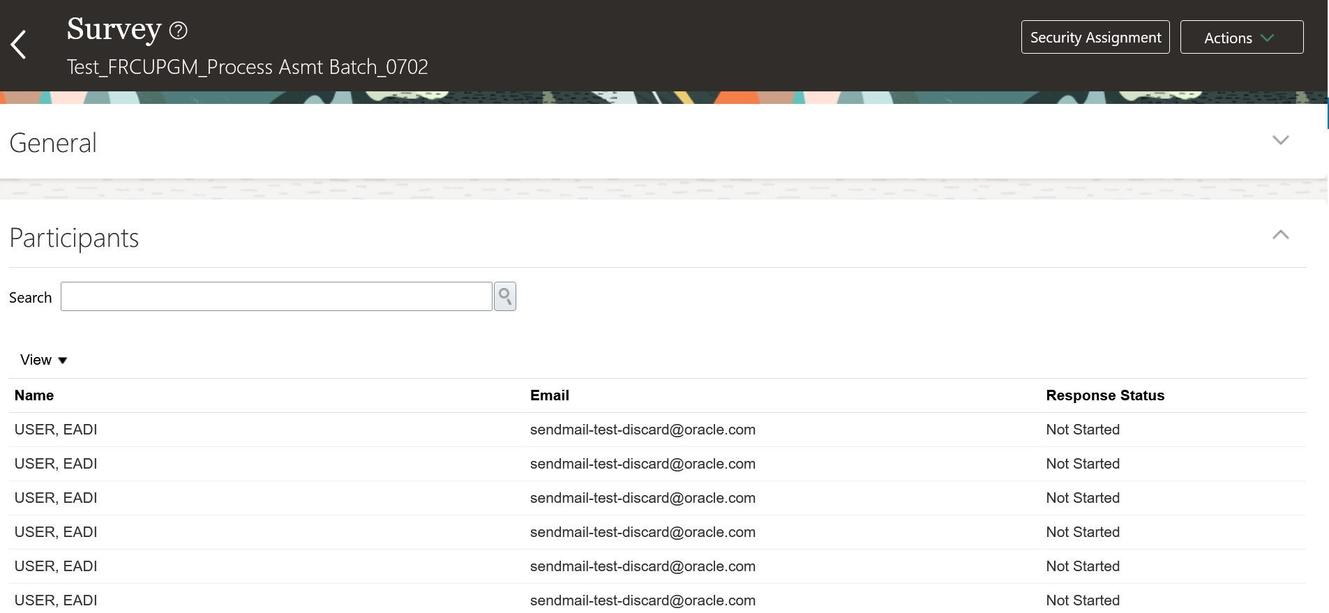 Search function enables users to search for assigned participants in the survey. The column sort enables the user to arrange the participants in a descending or ascending order to enhance the management of the assigned participants. The ability to create multiple survey questions with the same question text enables you to support new question responses; it's recommended that you add descriptions to differentiate between questions with same text.