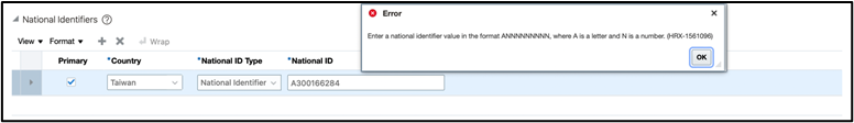 National Identification Number Validation for Taiwan Foreign Nationals |