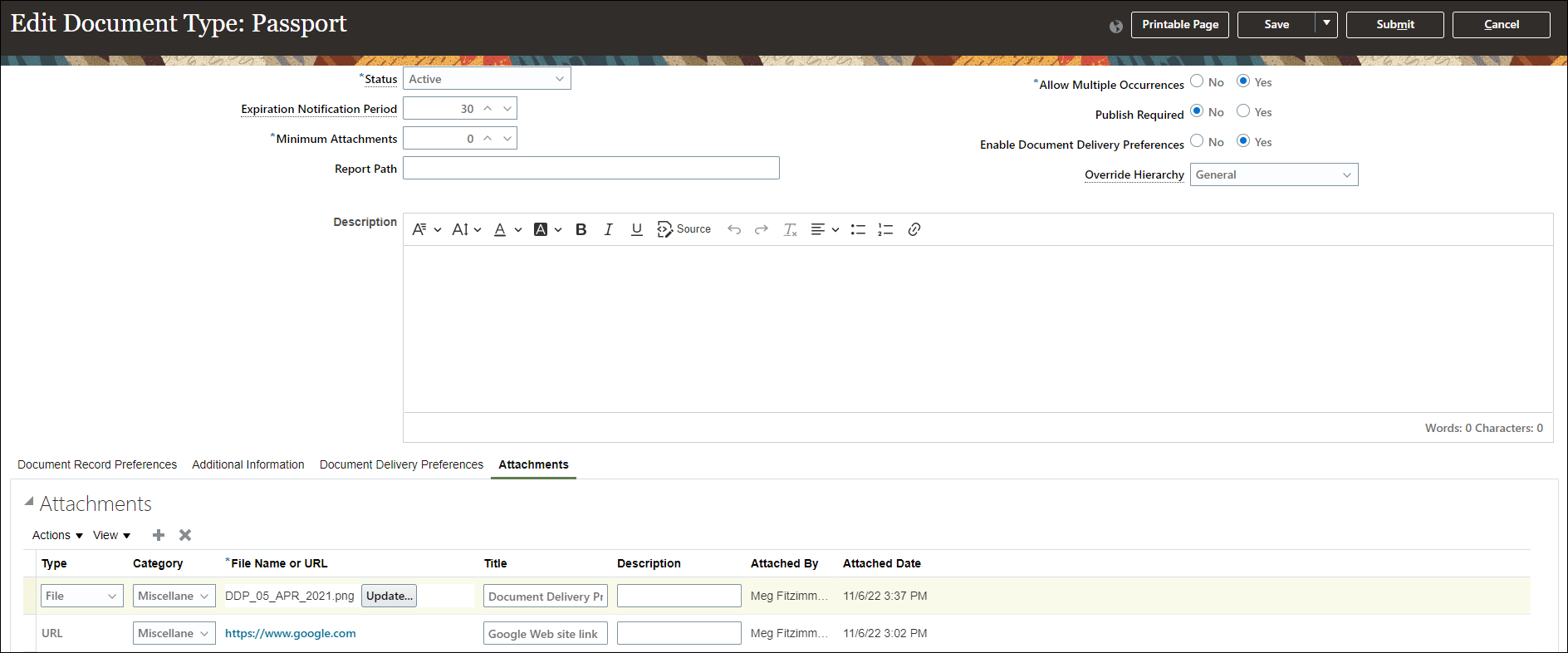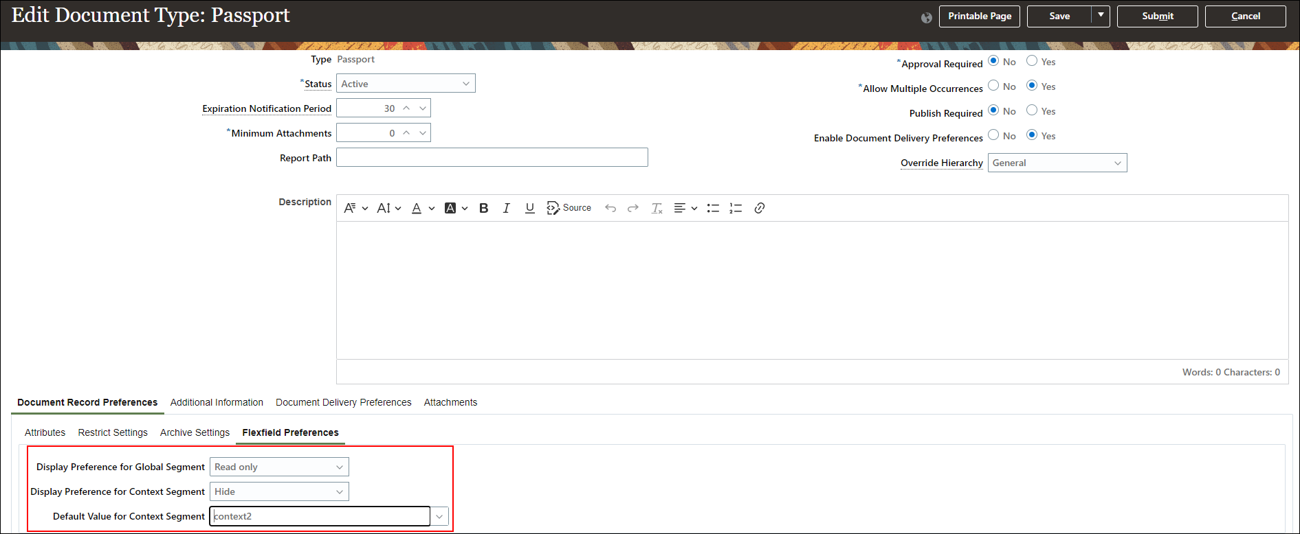 - Display Preferences of Document Records Descriptive Flexfields for Document Type