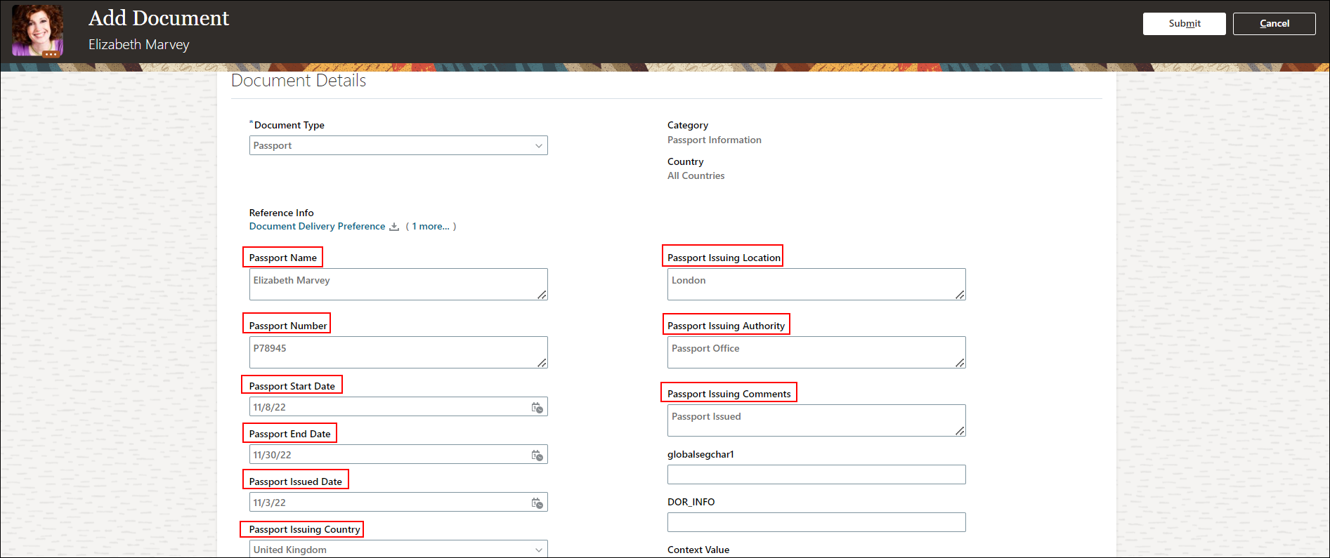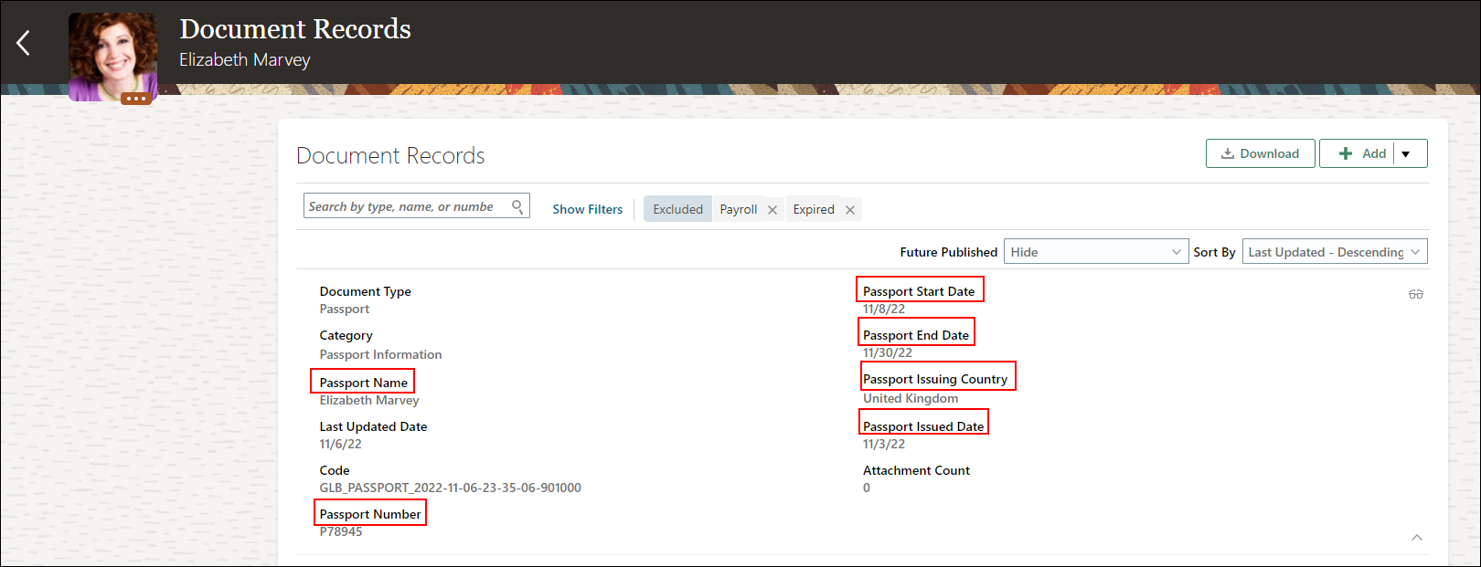 You can view advanced reports on the archived documents of record with the new subject area Workforce Management - Documents of Record Archive Real Time.