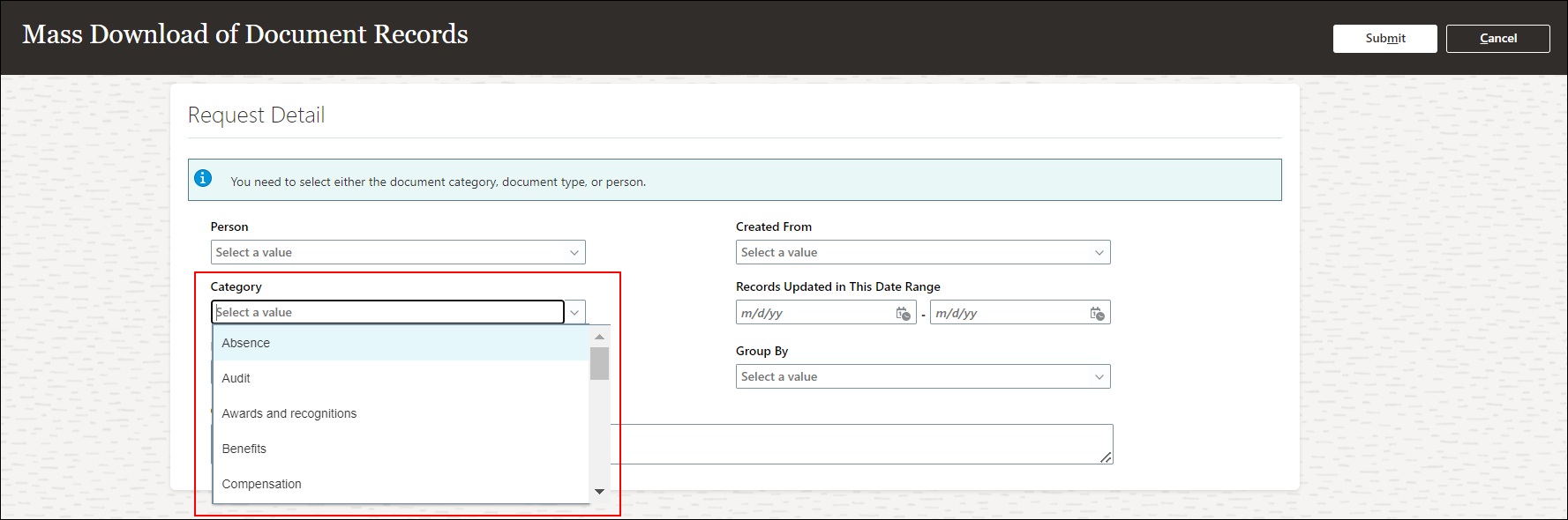 - Additional Parameters to Filter Document Records on Mass Download of Document Records Page