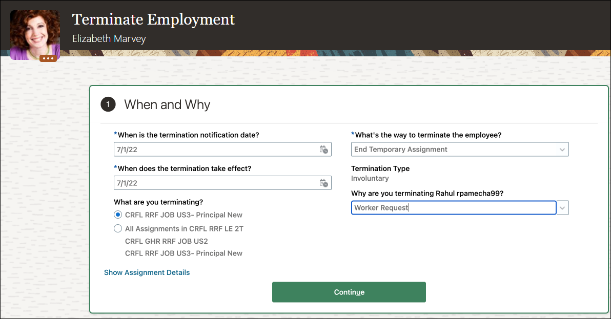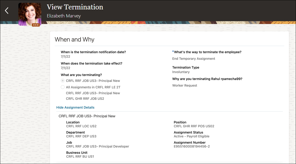 - Record Additional Data When Deleting an Assignment Record Using Employment Info Page