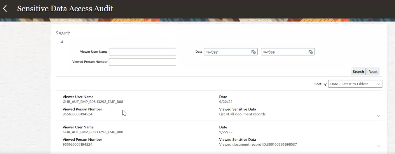 You can now view reports on the attributes related to the archived documents of record with the Workforce Management - Documents of Record Archive Real Time subject area.