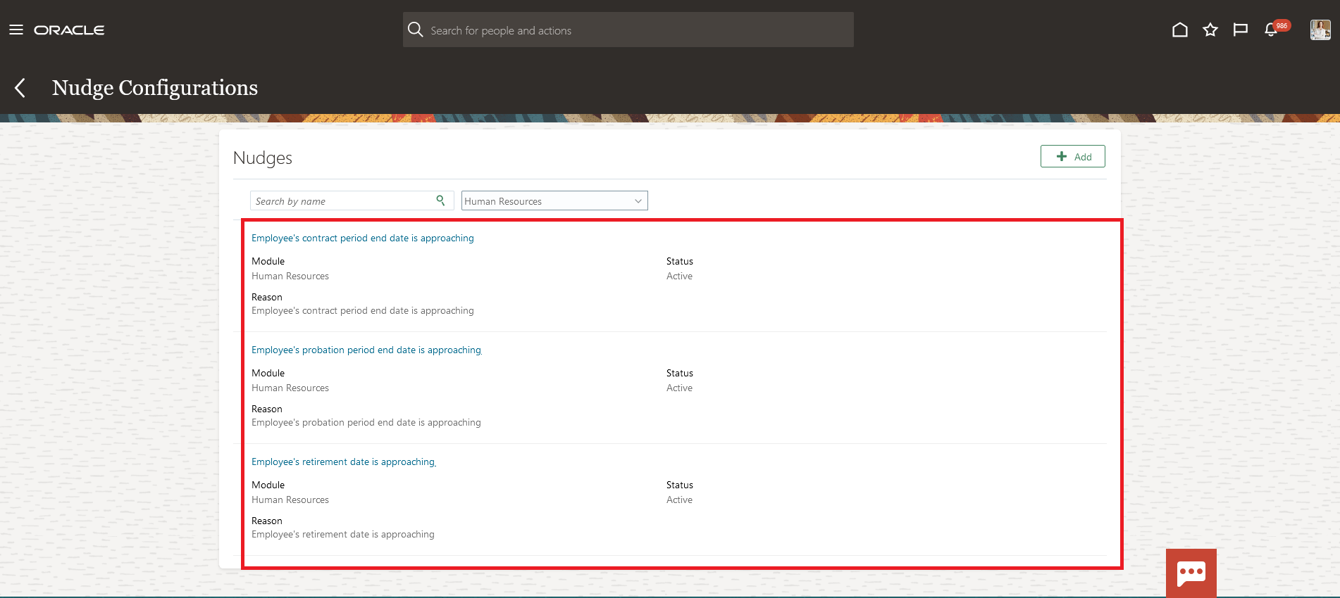 Get suggestions on your next likely actions in your news feed layout. This feature is currently in Controlled Availability and is available in Oracle Fusion Cloud HCM. Artificial intelligence and machine learning algorithms predict and suggest the actions each user is most likely to take during a session. The algorithms use historic navigation behavior and patterns of each user and users like them to determine which navigation target they’re most likely to visit.