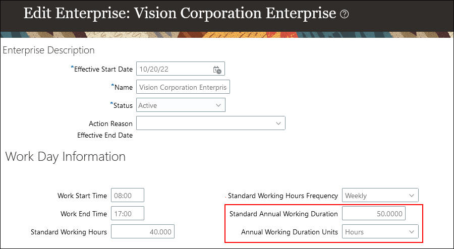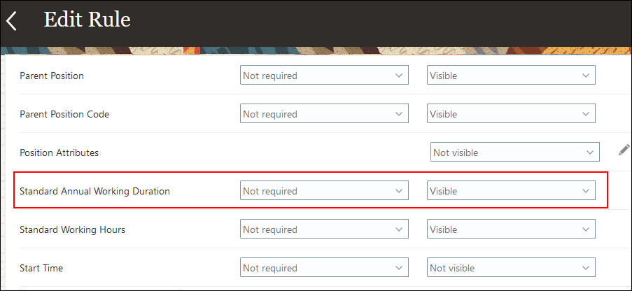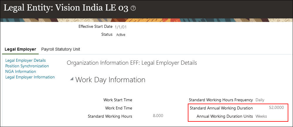 - Default Standard Working Hours, Standard Annual Working Duration and Units of Measure for Position