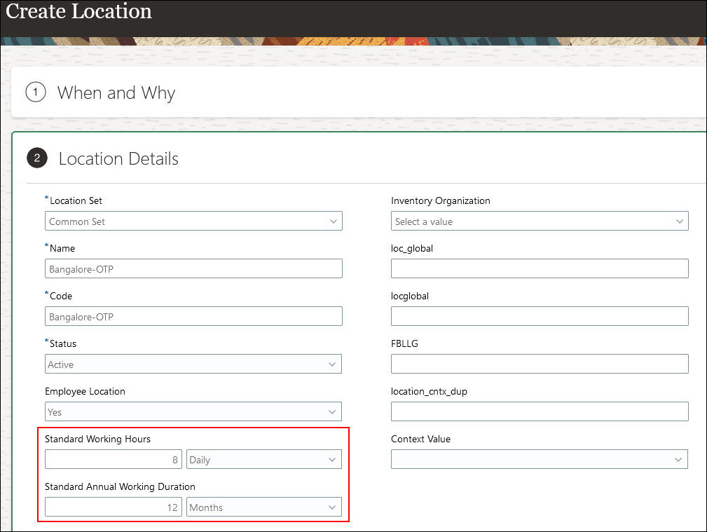 - Addition of Standard Working Hours, Standard Annual Working Duration, and Units of Measure for Location