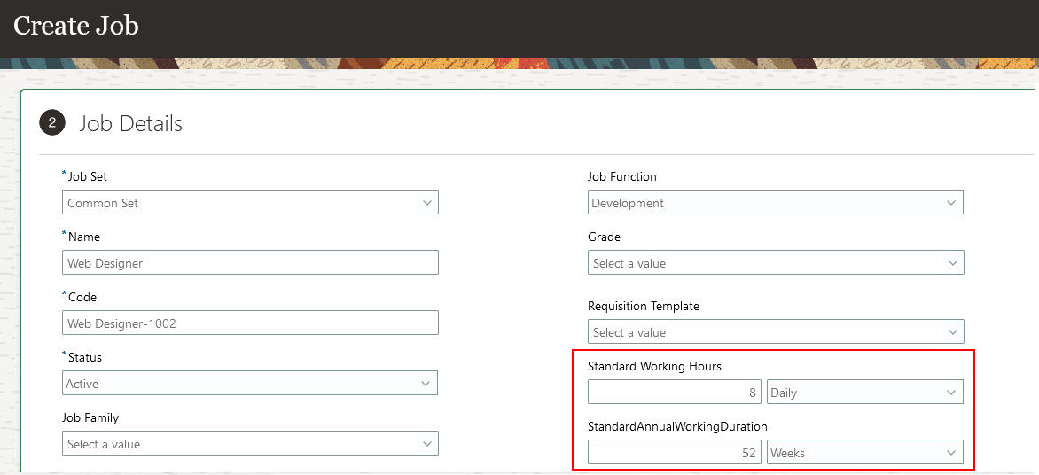 - Addition of Standard Working Hours, Standard Annual Working Duration, and Units of Measure for Job