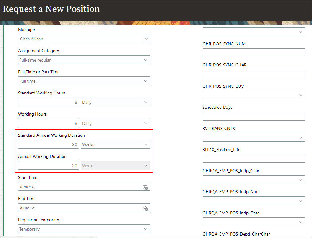 - Addition of Standard Annual Working Duration, Annual Working Duration and Units of Measure for Position