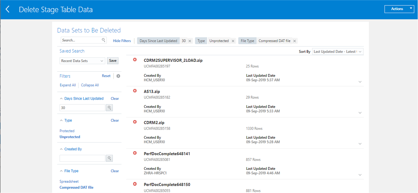 You can only prematurely delete protected data sets if you have the function security privilege Delete HCM Data Loader Protected Data-Sets. This privilege isn't inherited by any preconfigured roles.