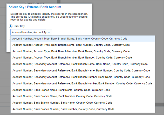 Many business objects provide multiple user key combinations to uniquely identify records being bulk loaded. When designing a spreadsheet template, you can now decide which user key combination should be used.