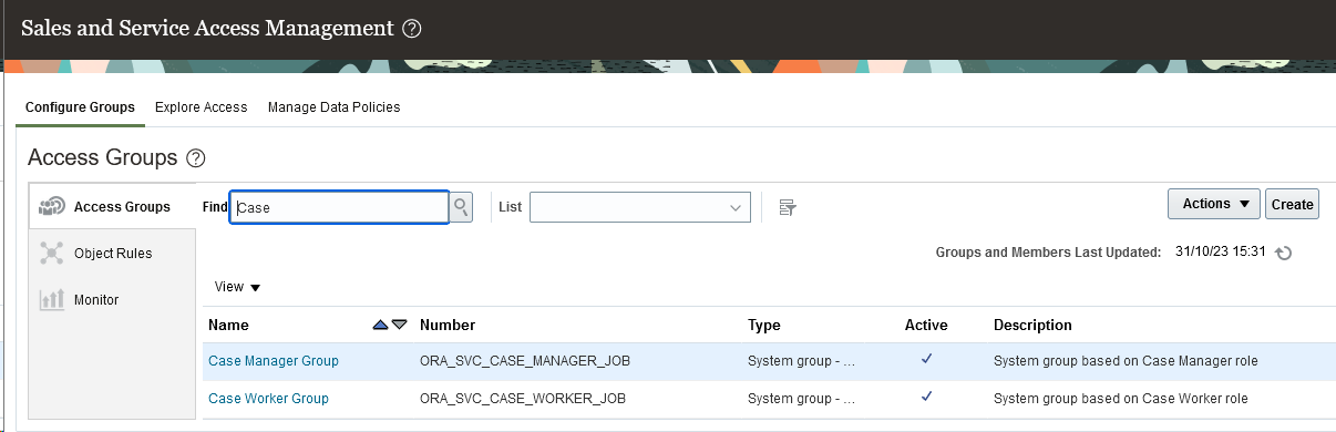 To get started quickly with Access Groups for Cases, consider using one or more of the 13 pre-configured system Access Groups.