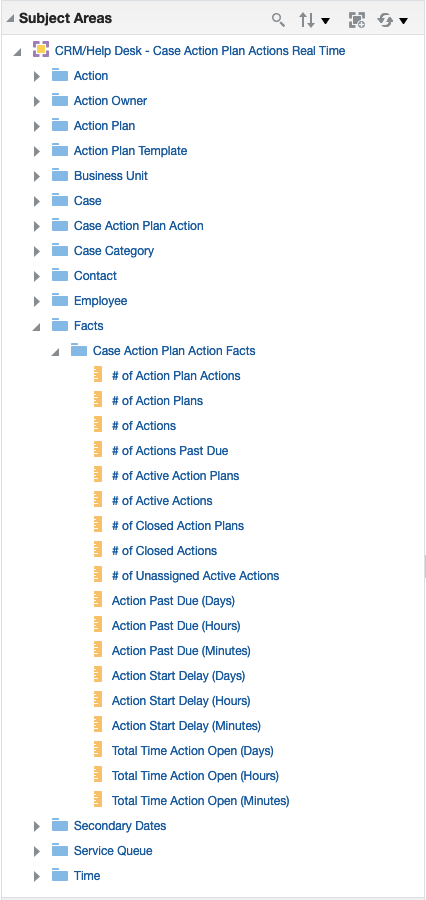 New Subject Area - CRM/Help Desk - Case Action Plan Actions Real Time is available for you to build your own analyses.